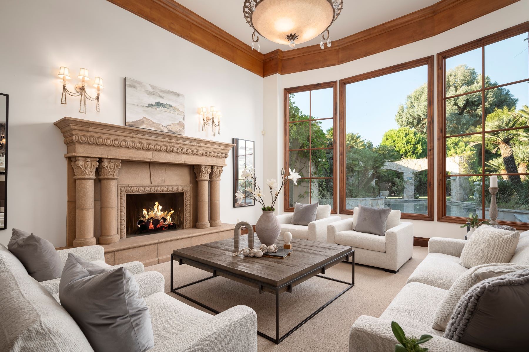 - Features Barn, Fitness Room, Granite Countertops, Guest House, Horse Facilities, Pool, Security System, Spa / Hot Tub, Tile Flooring, Billiards Room, Hardwood Flooring, Marble Countertop, Steam Room, Terrace / Outdoor Space, Washer Included, Dryer Included, Artist Studio, Outdoor Pool, Courtyard, Guest Ranch, 4+ Fireplaces, Steam Shower, 1 Fireplace, Yoga Space, Stone Flooring, Wine Bar