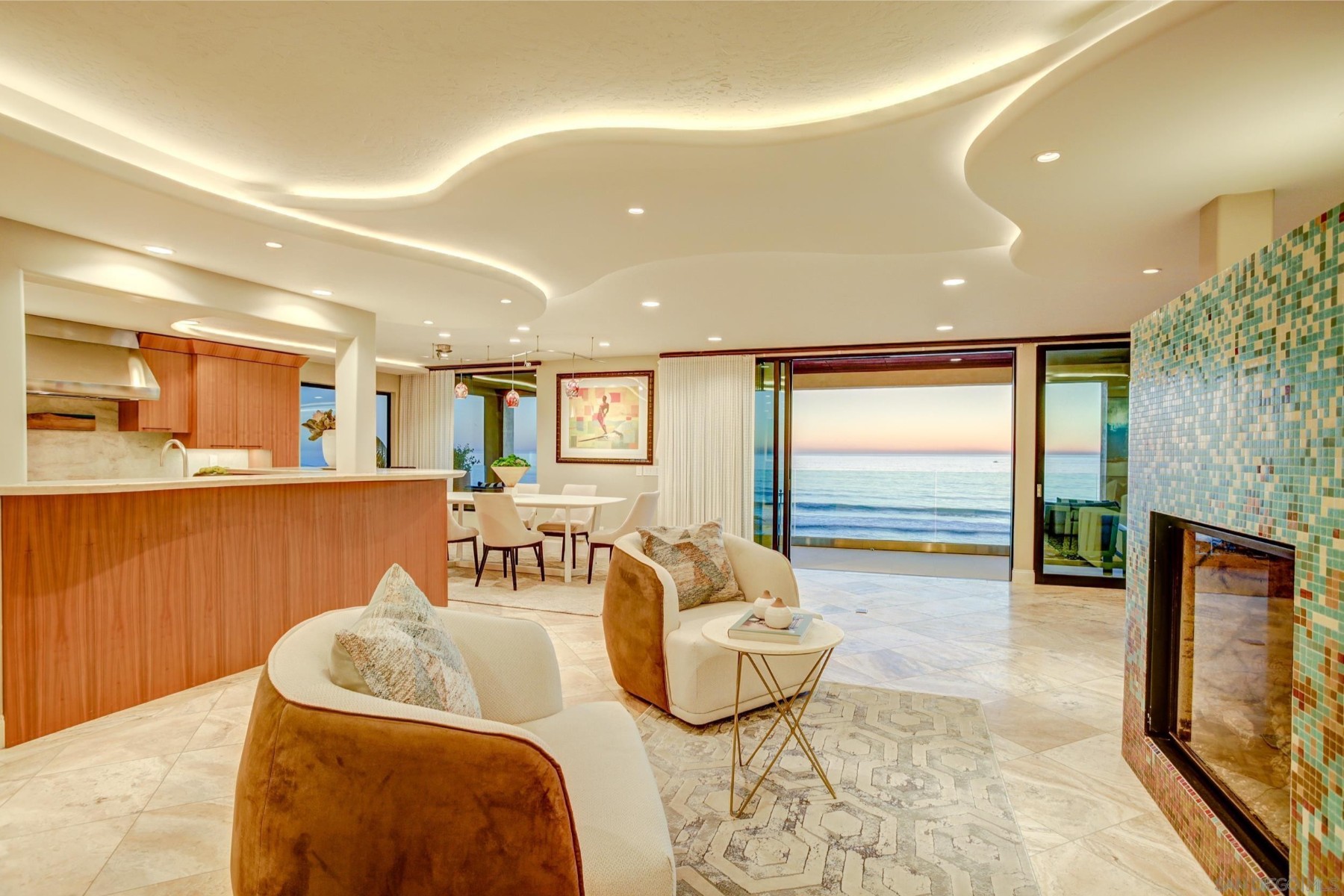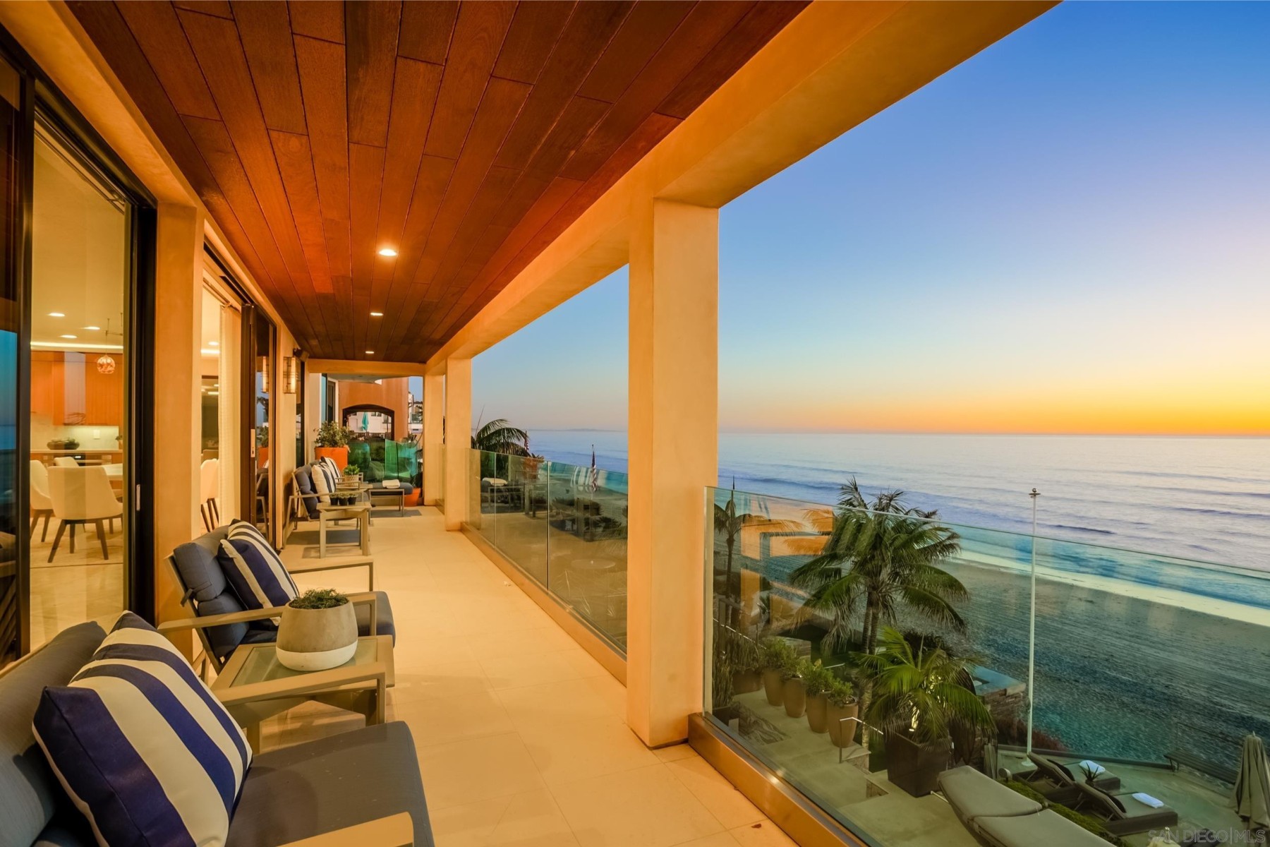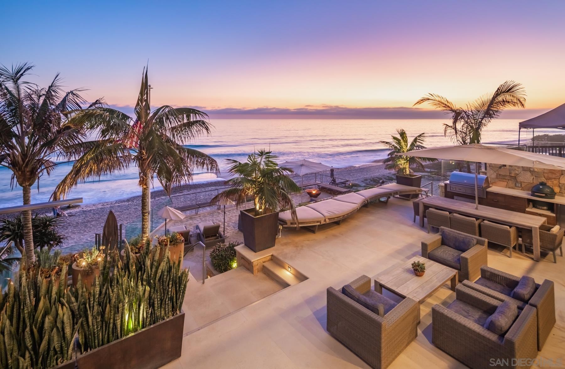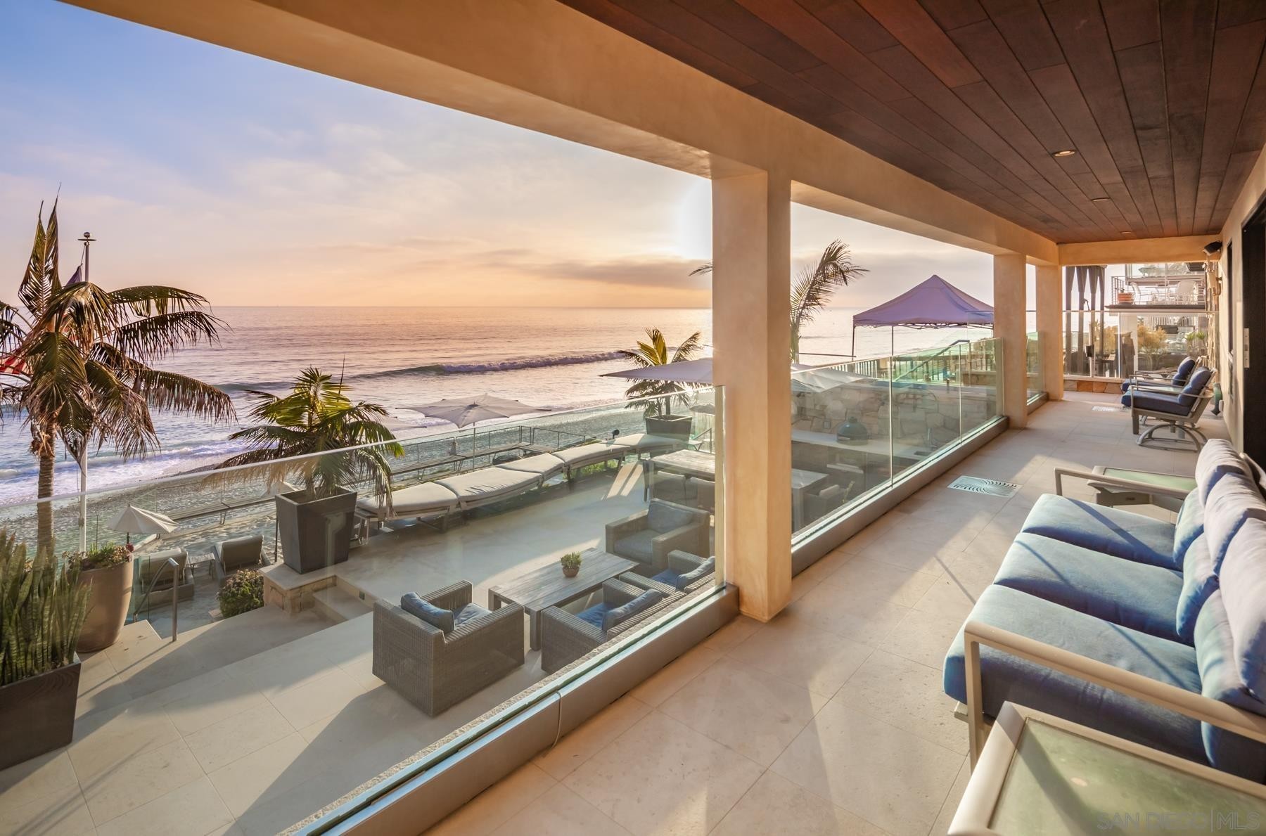 Oceanfront estate with panoramic water views directly on the sands of the most pristine stretch of beach in Carlsbad. 2641 Ocean Street, a beautifully designed 3 story home, with 5 bedrooms, 6 bathrooms and a separate one-bedroom downstairs guest suite sitting at nearly 6,200 sqft total. This home embodies a coastal design throughout, with state-of-the-art upgrades that take this residence to the next level. The entry level features a gourmet kitchen that includes Wolf and Subzero appliances, every element of this homes design defines luxury. An open floor plan with sliding glass doors to 3 patio areas allows for the ocean breeze to seamlessly spread throughout the home. Relax in the inviting living room with carved limestone fireplace and sliding wood and glass doors that open completely to the view deck, creating a large indoor/outdoor space. The spiral staircase & elevator provides access to all levels including the downstairs guest quarters. The upstairs level offers a Master suite with office/bedroom ensuite, stone fireplace and spacious walk-in closet. There are 3 additional bedrooms on this level as well as a home theater with an entertainment bar area. The private lower-level Guest Apartment includes a full kitchen with a walk out patio overlooking the Pacific Ocean. The highest-grade technology throughout including: Control4 smart home, commercial grade wifi & security. A spectacular backyard made for entertaining, with an outdoor kitchen, just steps away from the ocean water beautifully upgraded by Award Winning designer Wolfram Kalber.