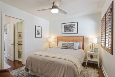 With zoned HVAC, each area of the condo — primary suite, secondary bedrooms, and living spaces—offers personalized comfort. The primary suite boasts a walk-in shower and custom California closets, while skylights and modern lighting enhance the home’s bright, airy feel.