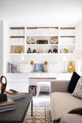 The main house features an oversized living room with a floating fireplace, a full bar, skylights, and expansive windows. The gourmet kitchen boasts custom cabinetry and top-of-the-line appliances.